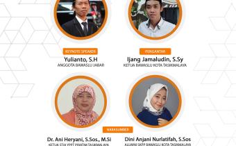 Bawaslu Kota Tasikmalaya menyelenggarakan kegiatan diskusi daring dengan mengangkat tema "Peran Strategis Alumni SKPP Dalam Pengawasan Pemilu dan Pemilihan Serentak 2024" bersama: