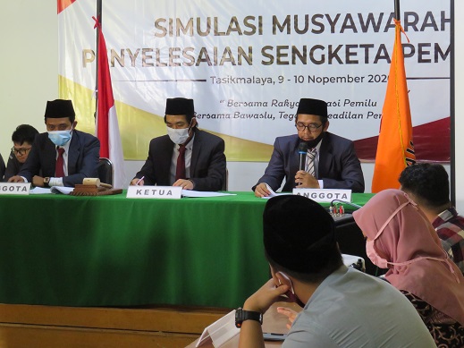 Ijang Jamaludin selaku ketua Bawaslu Kota Tasikmalaya menjelaskan "Walaupun di Kota Tasikmalaya tidak ada tahapan pemilihan, Bawaslu sebagai lembaga negara tetap melakukan aktifitas, salahsatu diantaranya menyelenggarakan kegiatan Simulasi Sidang Musyawarah Penyelesaian Sengketa Pemilihan".