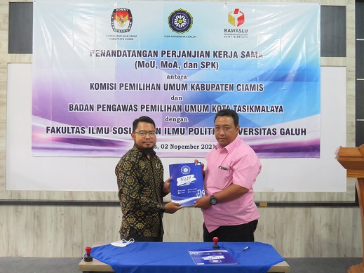 Penandatangan Surat Perjanjian Kerjasama dengan Program Studi Administrasi Publik dan Program Studi Ilmu Pemerintahan FISIP Universitas Galuh Ciamis dalam Program Bawaslu Mengajar adalah merupakan Tindak Lanjut dari MoU dan MoA antara Bawaslu Kota Tasikmalaya dengan FISIP Universitas Galuh Ciamis.