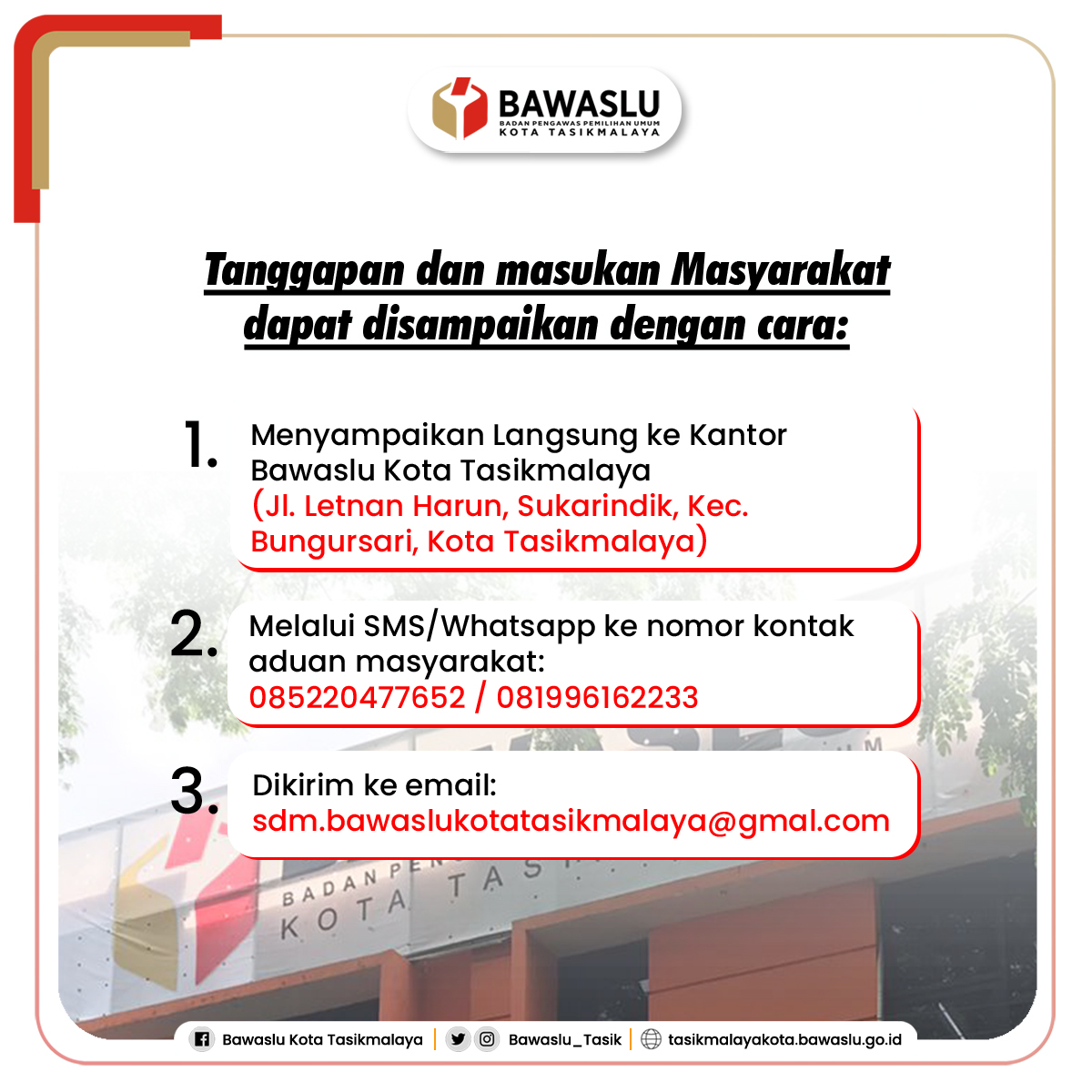 Ikuti terus sosial media dan website Bawaslu Kota Tasikmalaya untuk informasi lebih update ya 😊