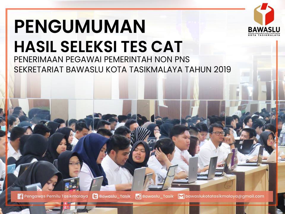 PENGUMUMAN HASIL SELEKSI TES CAT PENERIMAAN PEGAWAI PEMERINTAH NON PNS SEKRETARIAT BAWASLU KOTA TASIKMALAYA