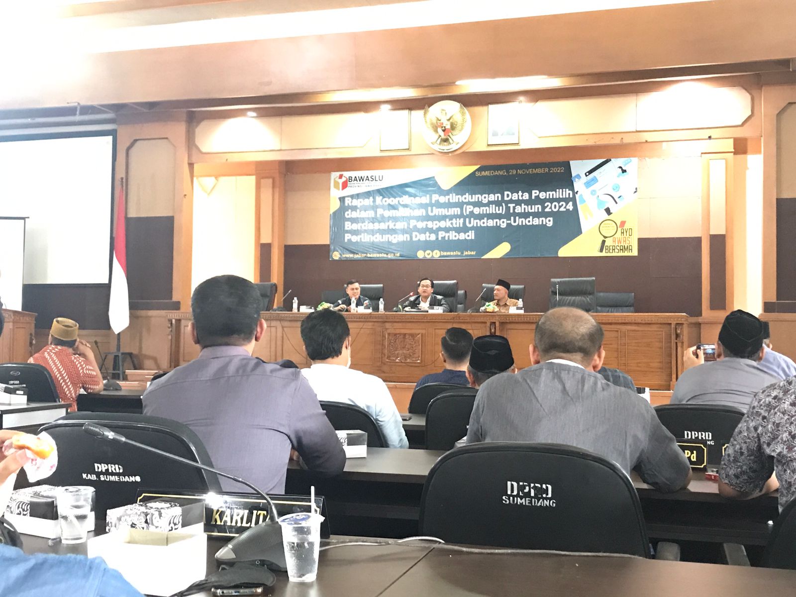 SUMEDANG – Anggota Bawaslu Kota Tasikmalaya Enceng Fuad Syukron menghadiri kegiatan Rapat Koordinasi Perlindungan Data Pemilih Dalam Pemilihan Umum Tahun 2024 Berdasarkan Perspektif Undang Undang Perlindungan Data Pribadi, kegiatan dilaksanakan di Pendopo Pusat Pemerintahan Sumedang (PPS) (30/11/2022).