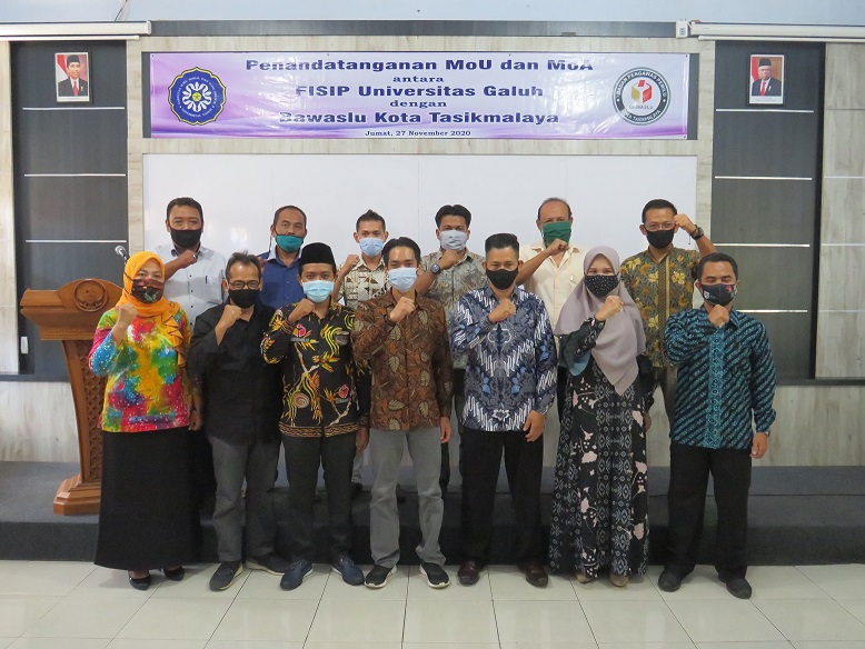 CIAMIS (27/11) – Bawaslu Kota Tasikmalaya dan FISIP Universitas Galuh menandatangani Nota Kesepahaman Memorandum of Understanding (MoU) dan perjanjian kerja sama Memorandum of Agreement (MoA) di Fakultas FISIP Universitas Galuh.