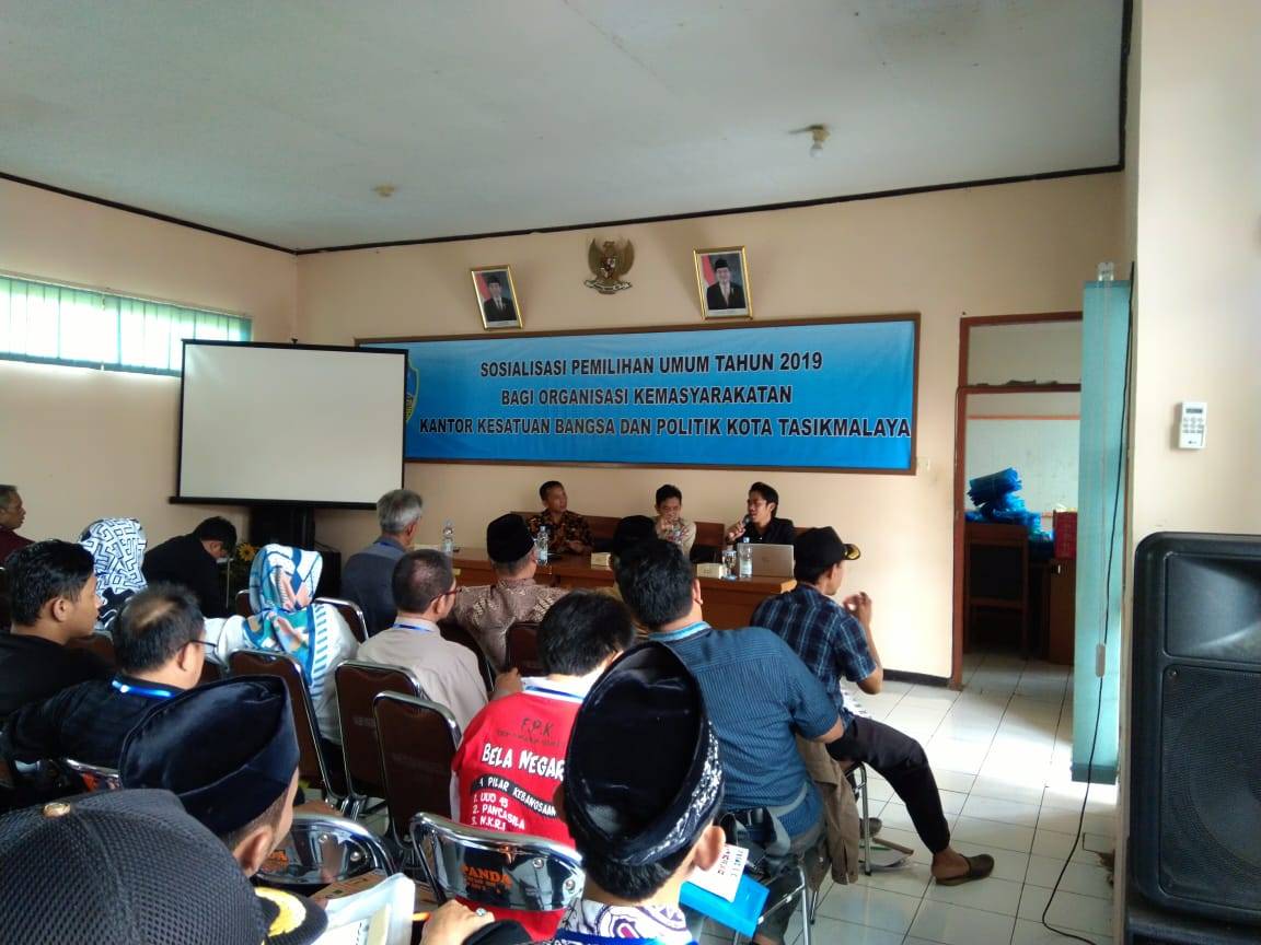 Mengingatkan agar masyarakat yang mempunyai hak pilih untuk menggunakan hak suaranya pada pemilu April 2019 mendatang. Badan Kesatuan Bangsa dan Politik (Kesbangpol) menggandeng Bawaslu, KPU dan Ormas di Kota Tasikmalaya dalam kegiatan Sosialisasi pemilu 2019 di Kantor kesbangpol, pada hari ini, Selasa, 05 maret 2019.